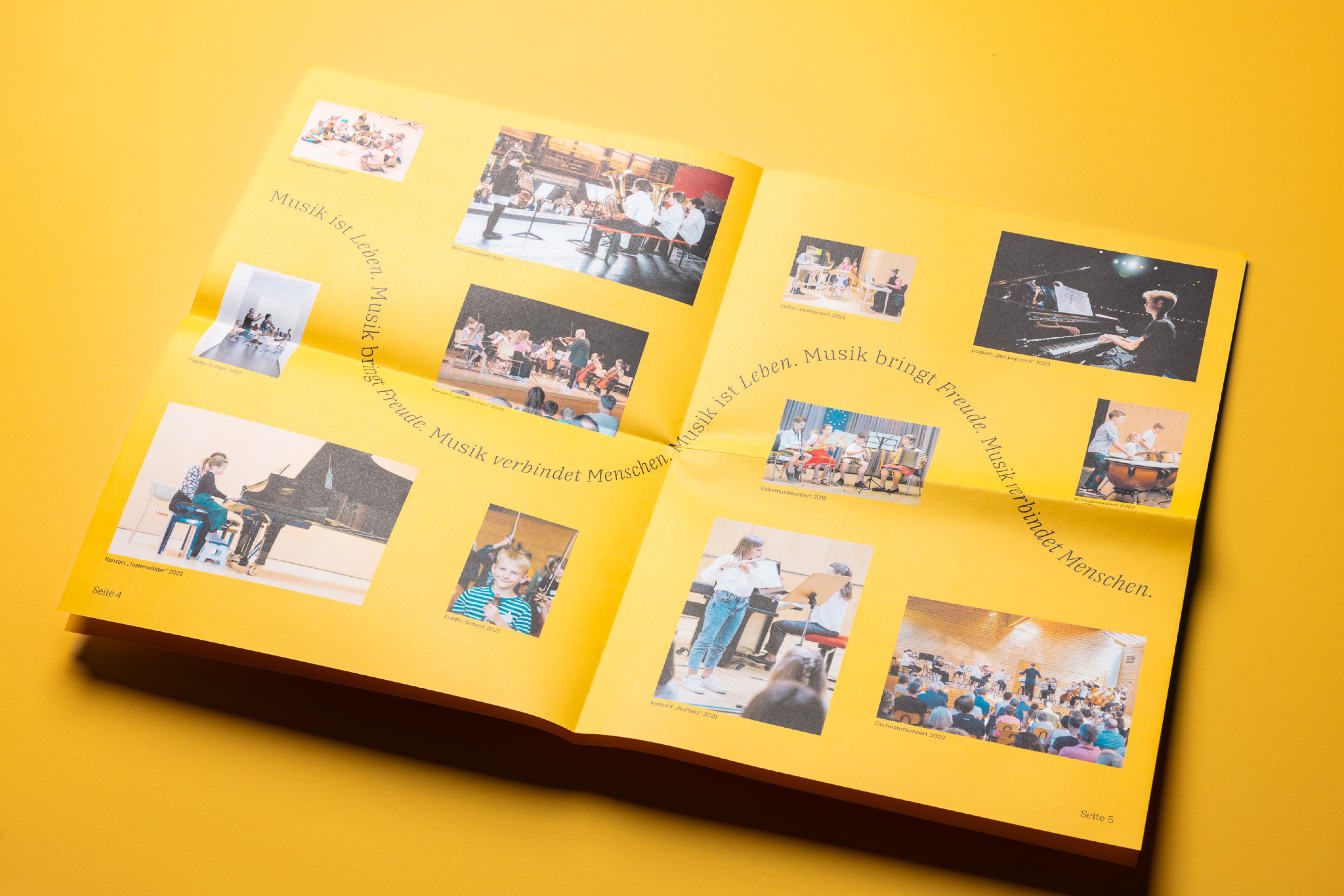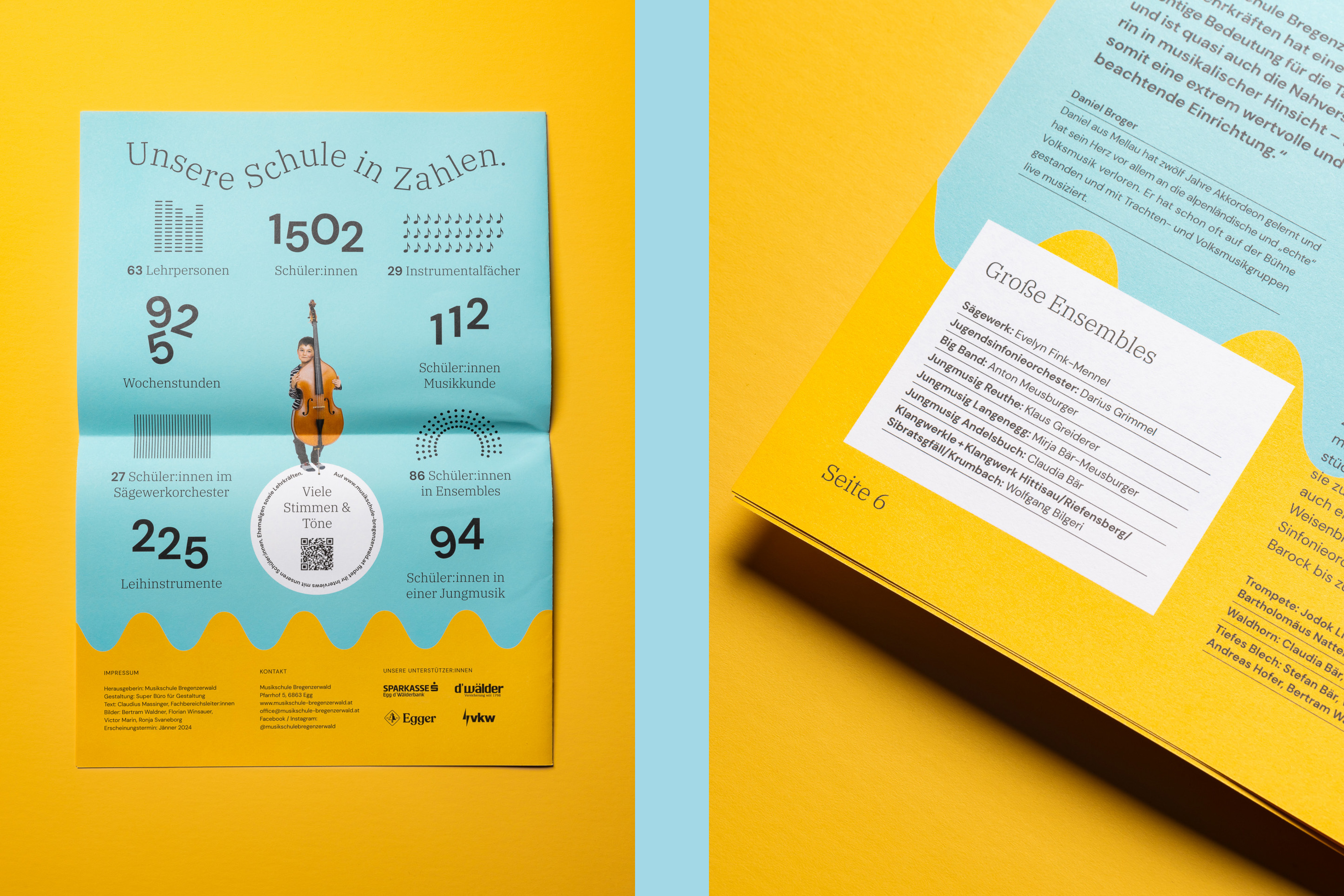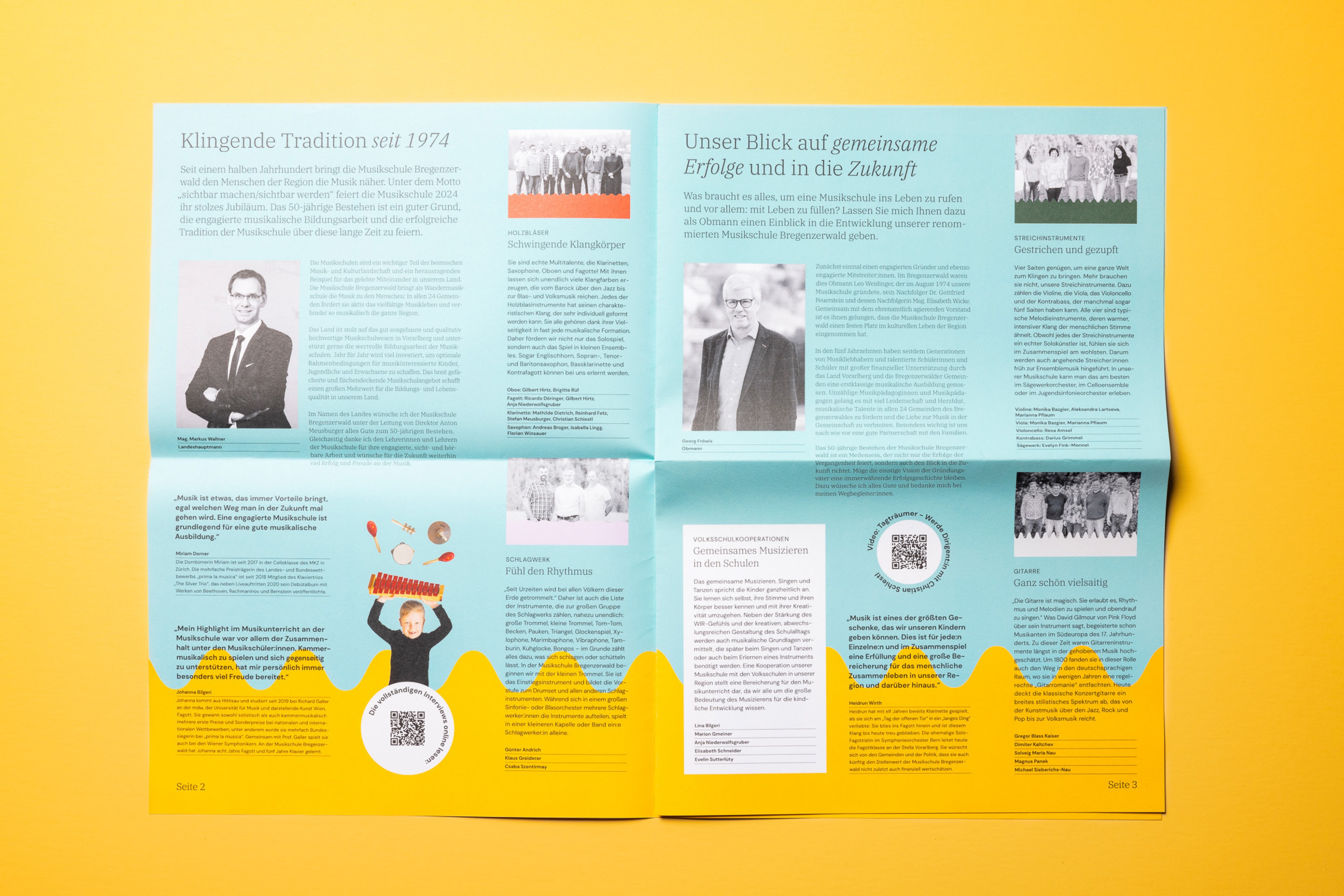 Eine bunte Jubiläumszeitung informiert die Bevölkerung über die Geschichte der Musikschule Bregenzerwald.