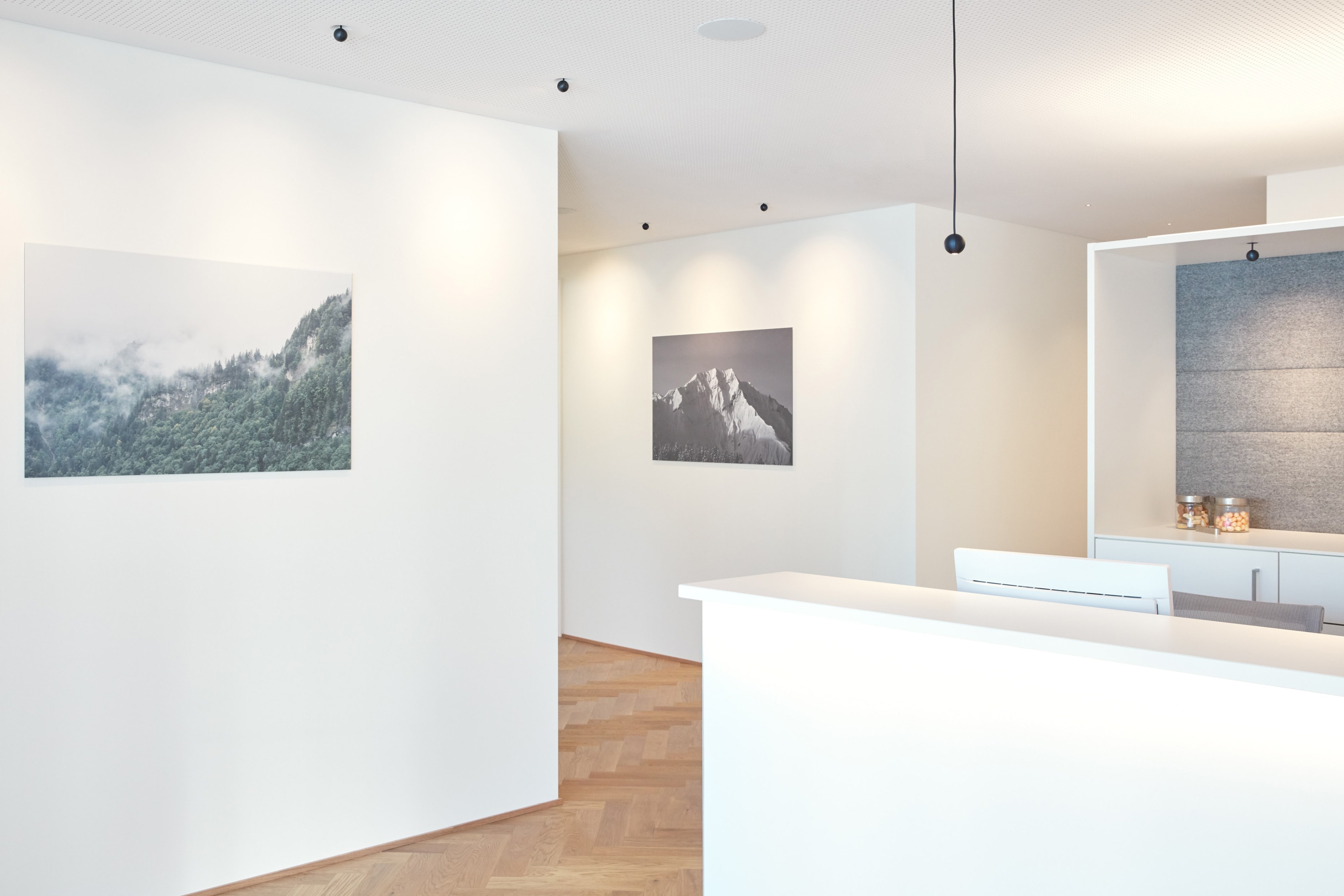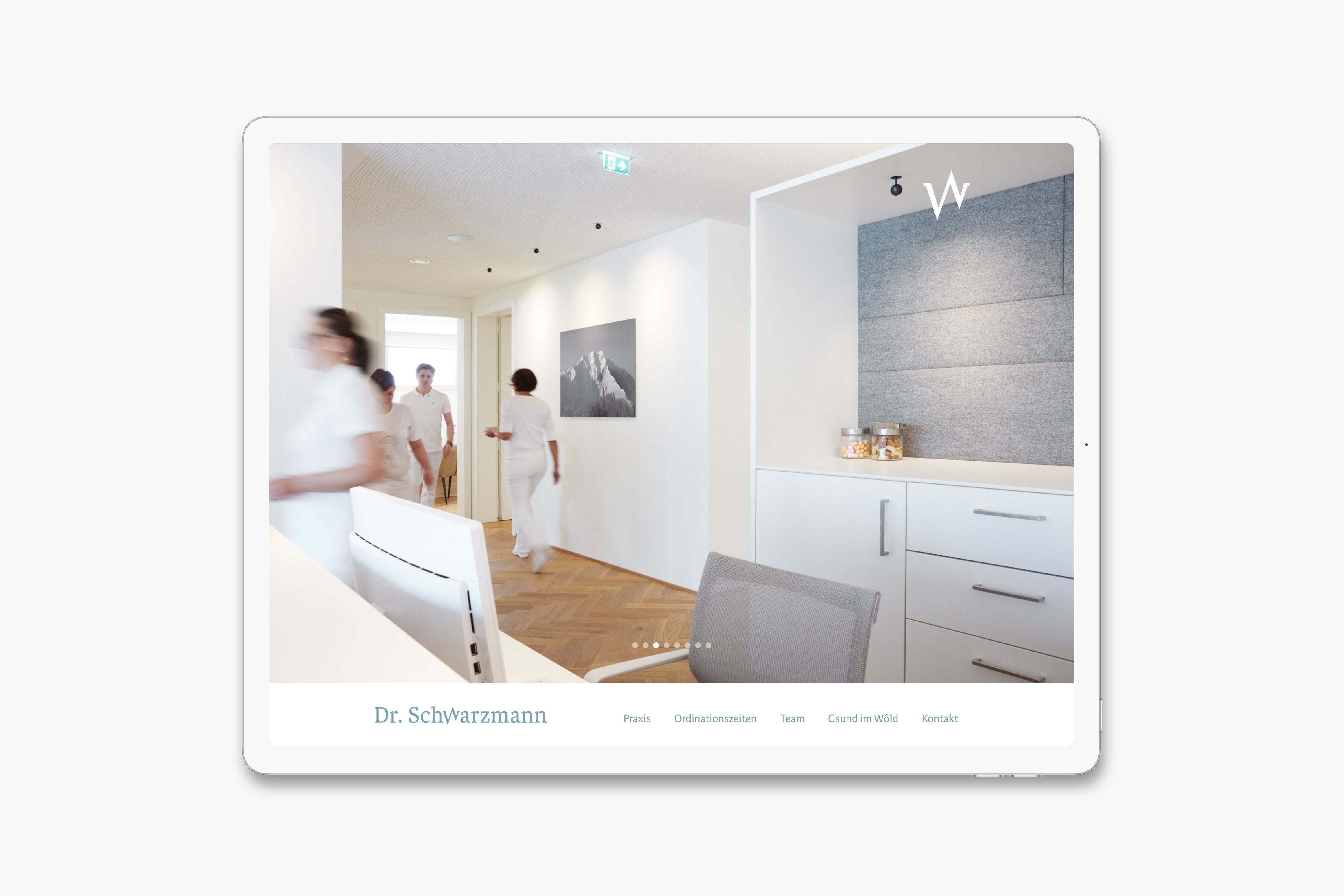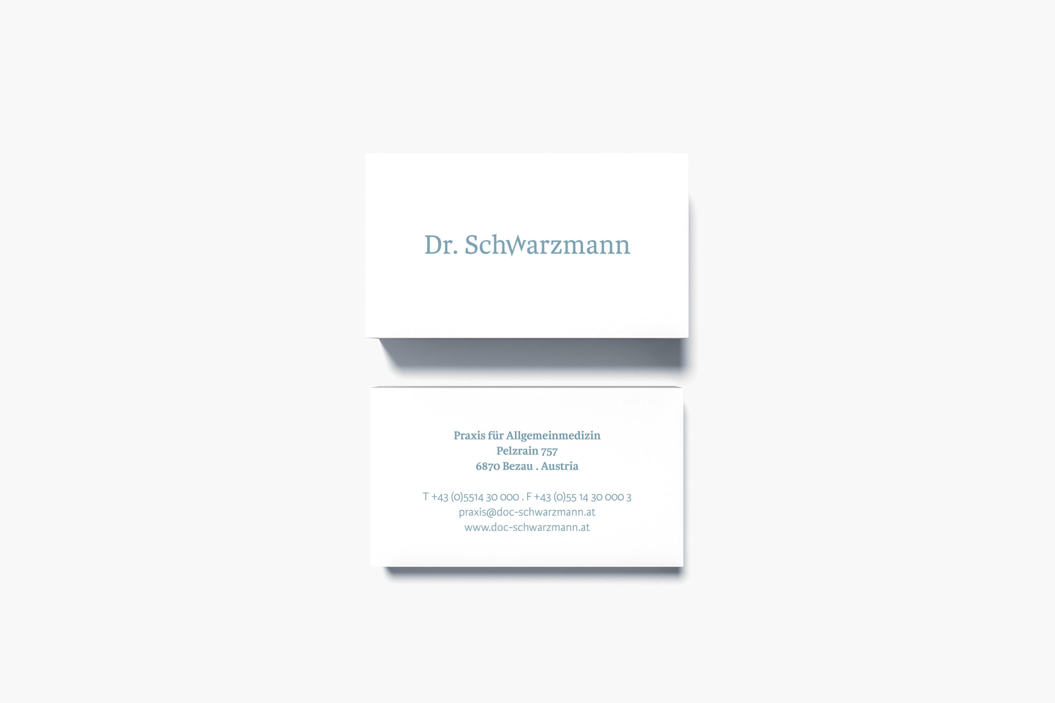 Neben dem Logo entwickelten die Gestalter:innen eine kleine informative Website, die klassischen Geschäftsdrucksorten und die Beschriftung für das Ordinationsgebäude.