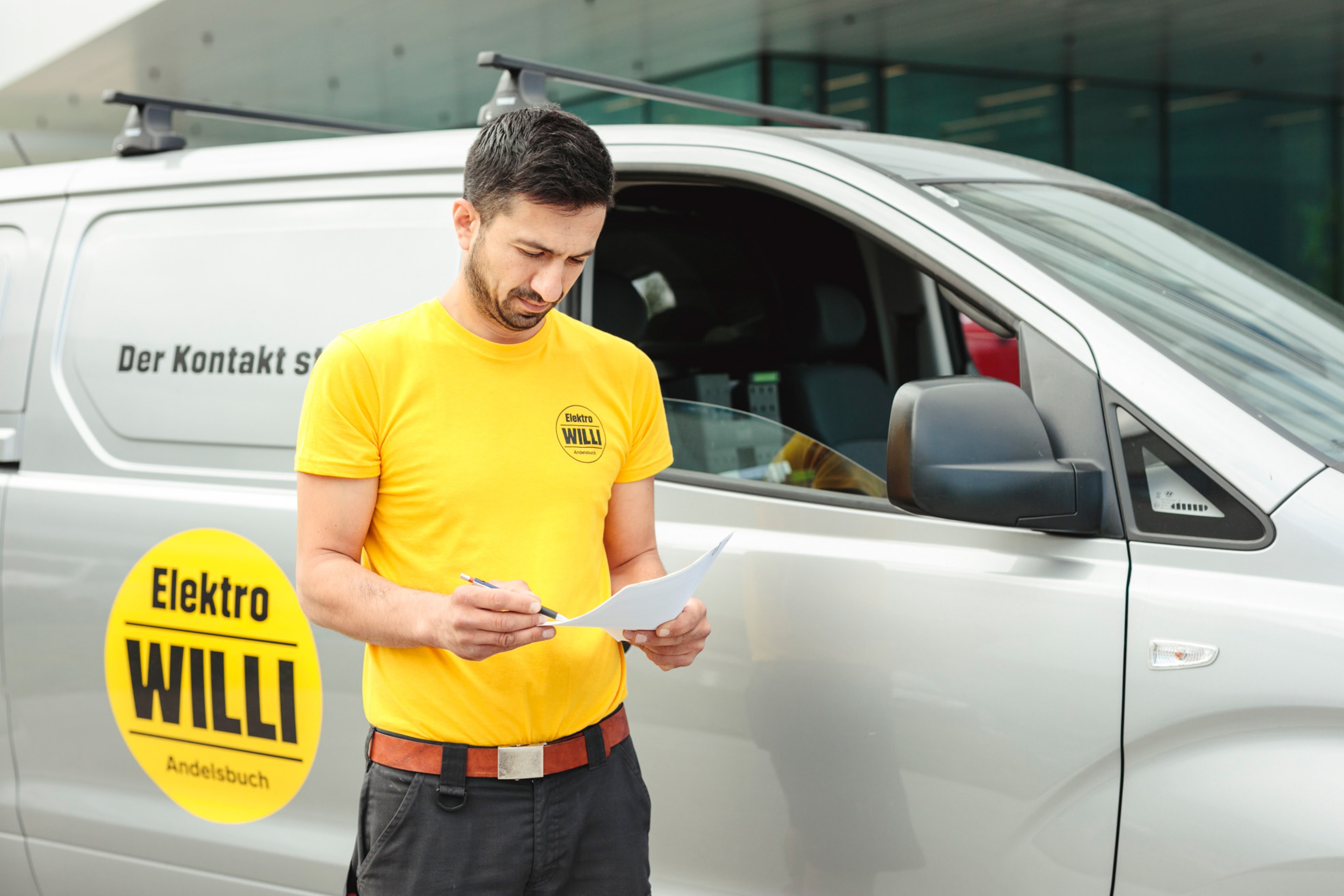 Angewandt wird das neu entwickelte, aufgeräumte Design in verschiedenen Bereichen des täglichen Büro-Bedarfs von Briefpapier über Mappen und Blöcke bis zu Visitenkarten – und erreicht durch zahlreiche Umsetzungen im Arbeitsalltag eine starke Präsenz in der Region. Ob Firmenautos oder die auffälligen Arbeits-T-Shirts der Mitarbeiter – das Branding mit den beiden horizontalen Linien sowie einer großen gelben Farbfläche sorgt für den hohen Wiedererkennungswert und vermittelt stets ein stimmiges Gesamtbild.