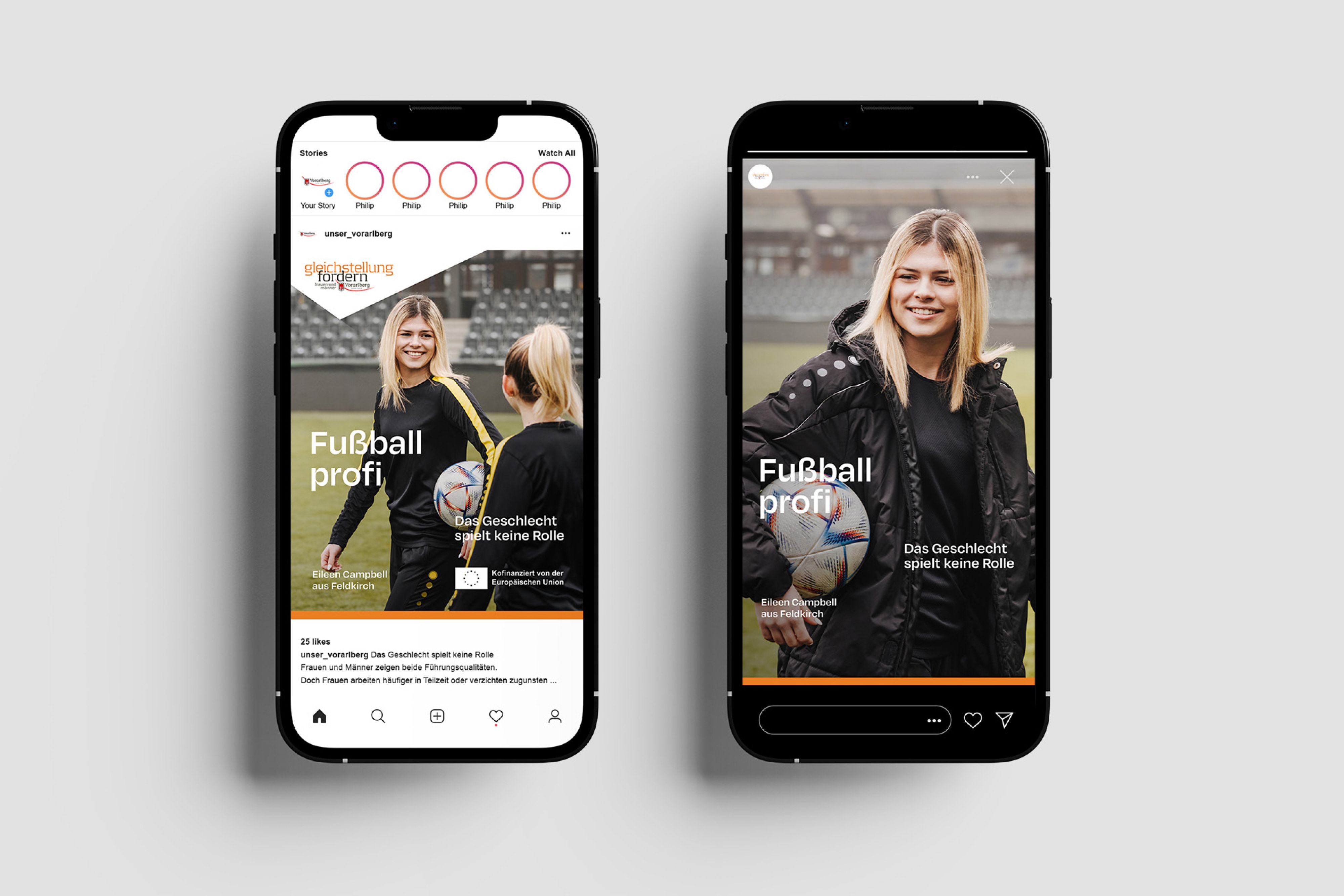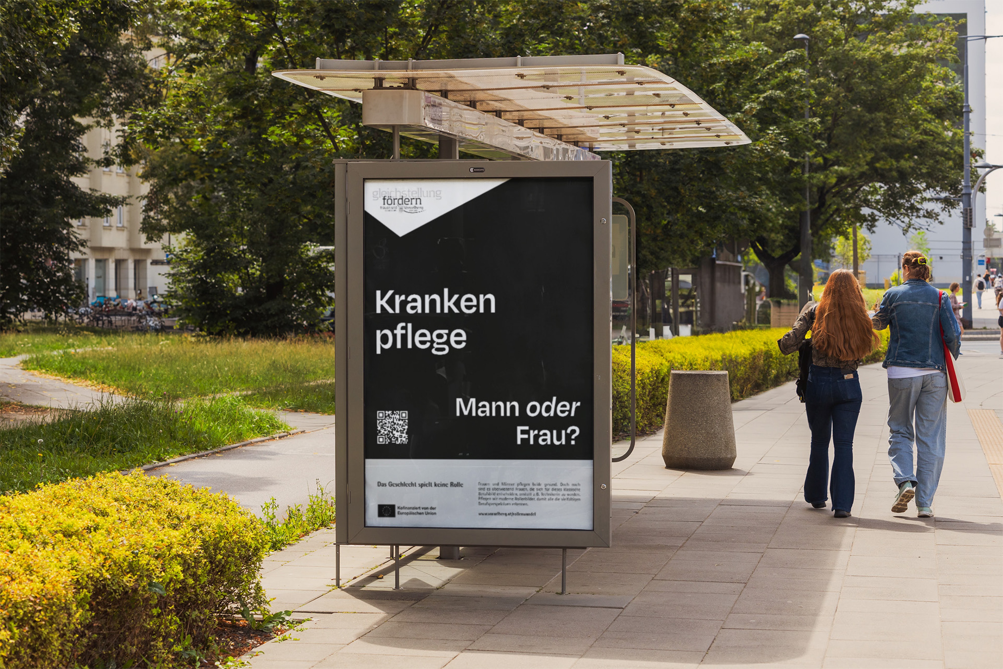 In Phase zwei wurde der Fokus auf konkrete Vorbilder gelegt. Vier reale Personen – aus den Themenfeldern Beruf und Sorgearbeit – erzählen in kurzen Texten und Bildern von ihren Wegen. Die Kampagne wurde nun farbig und visuell greifbarer.