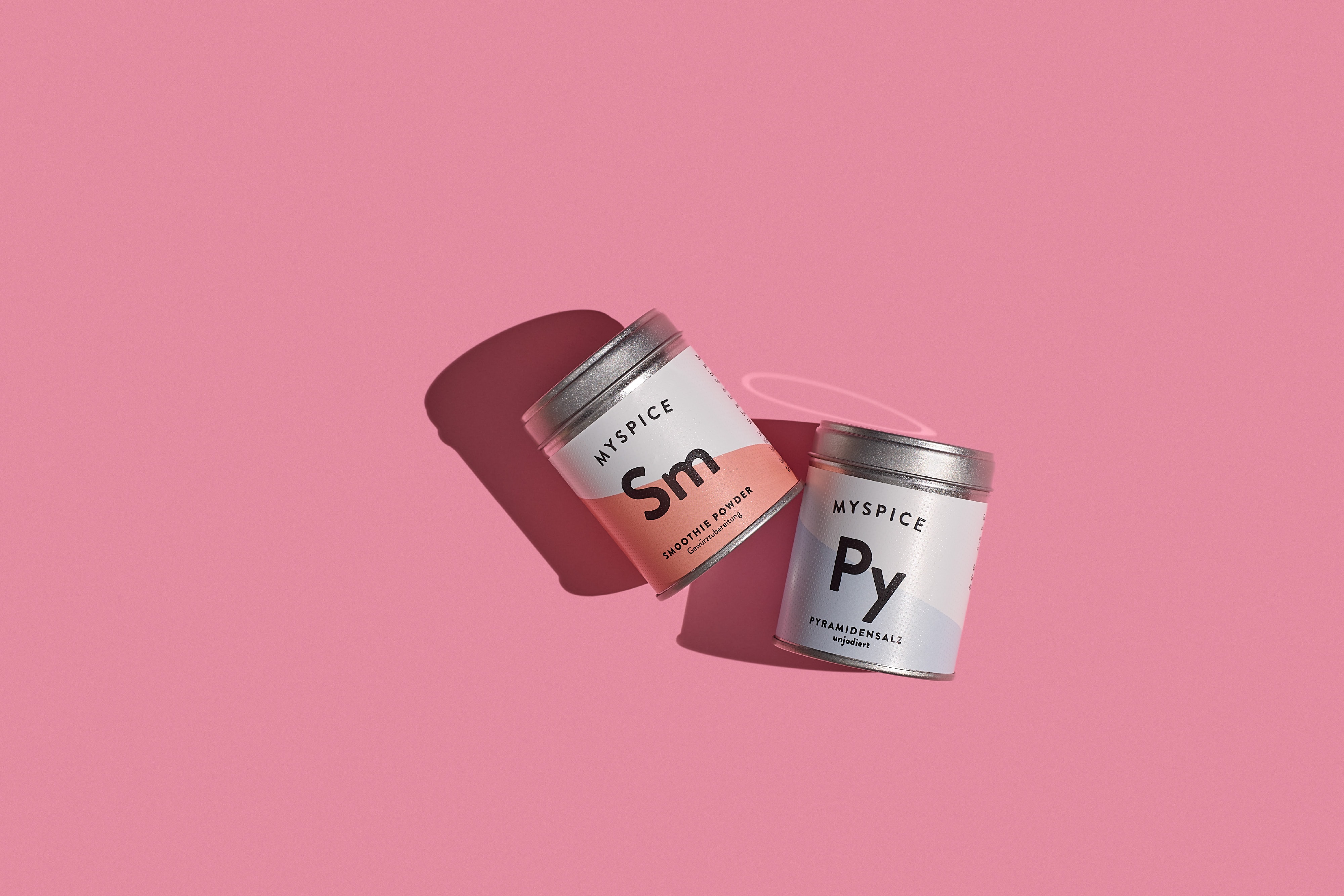 Eine besondere Herausforderung lag in der Entwicklung einer klaren und übersichtlichen Systematik, um zum einen die vielen Produkte auf charmante Weise zu kennzeichnen und zum anderen reine Gewürze von Gewürzmischungen sowie Saucen und Suppen zu unterscheiden. In Anlehnung an das chemische Periodensystem, das sowohl optisch als auch in seiner Funktion bereits vertraut ist, reduzierten die Gestalter:innen die MYSPICE-Produkte auf Kürzel aus jeweils zwei Buchstaben.