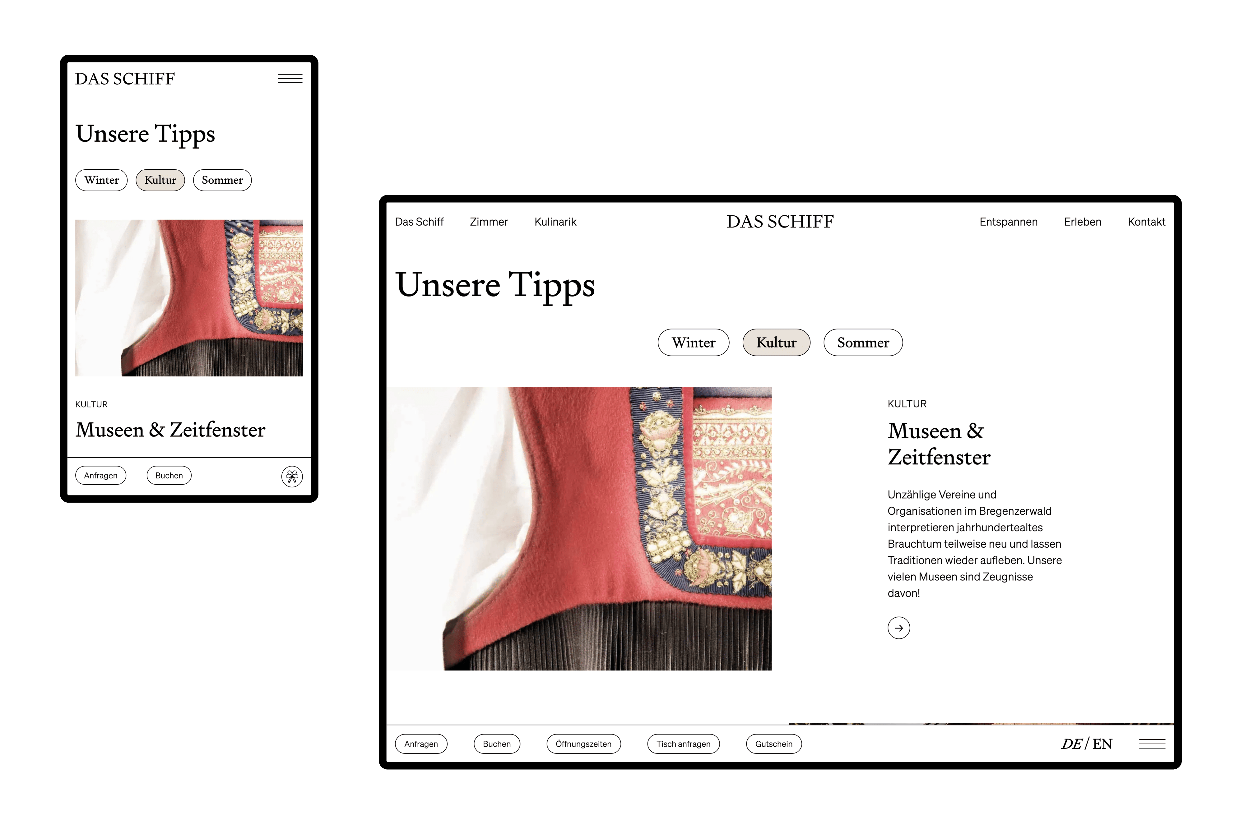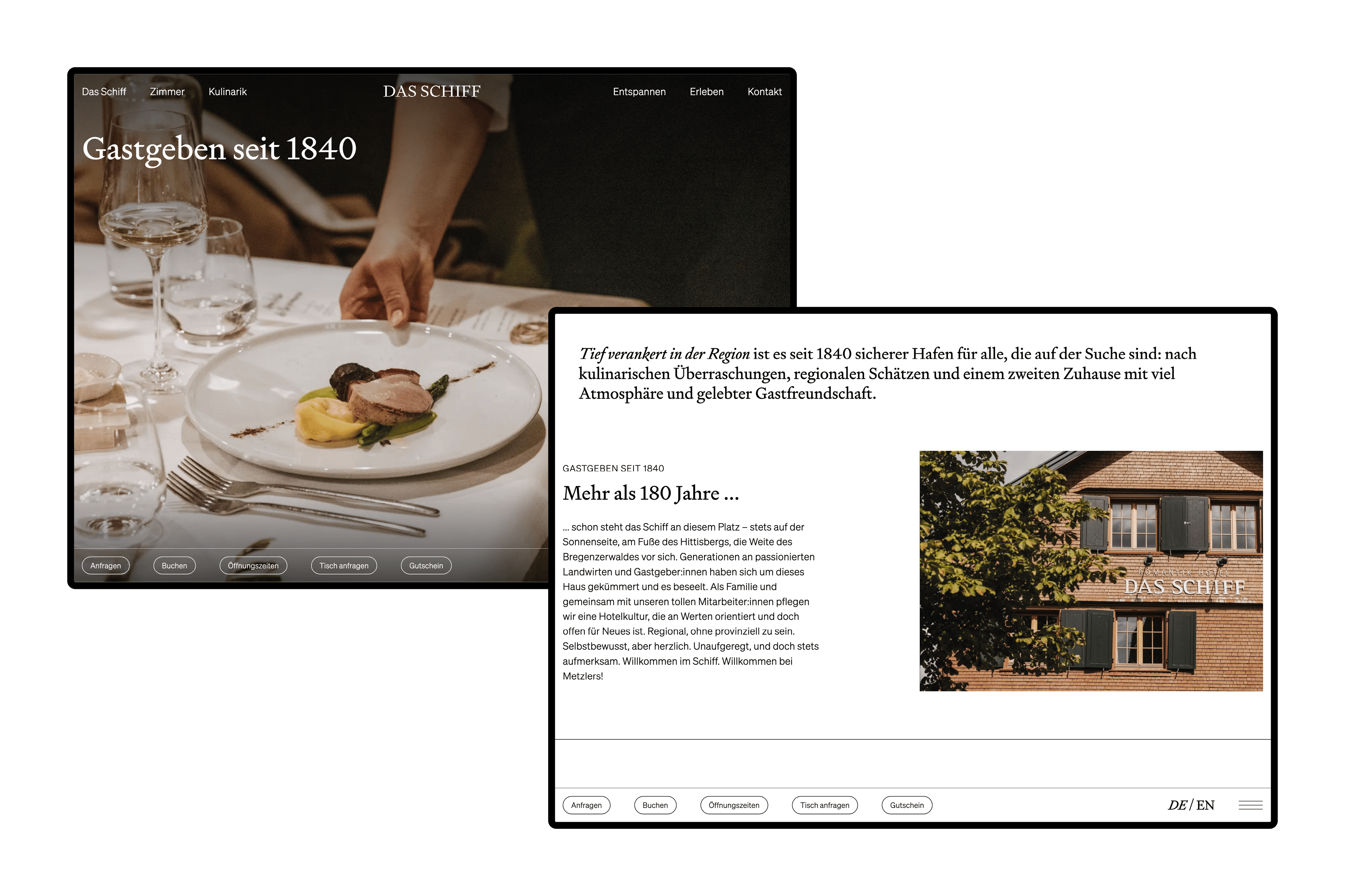 Die neue Website übersetzt, was Das Schiff ausmacht: gelebte Gastlichkeit, Architektur mit Bestand, kulinarische Erlebnisse.