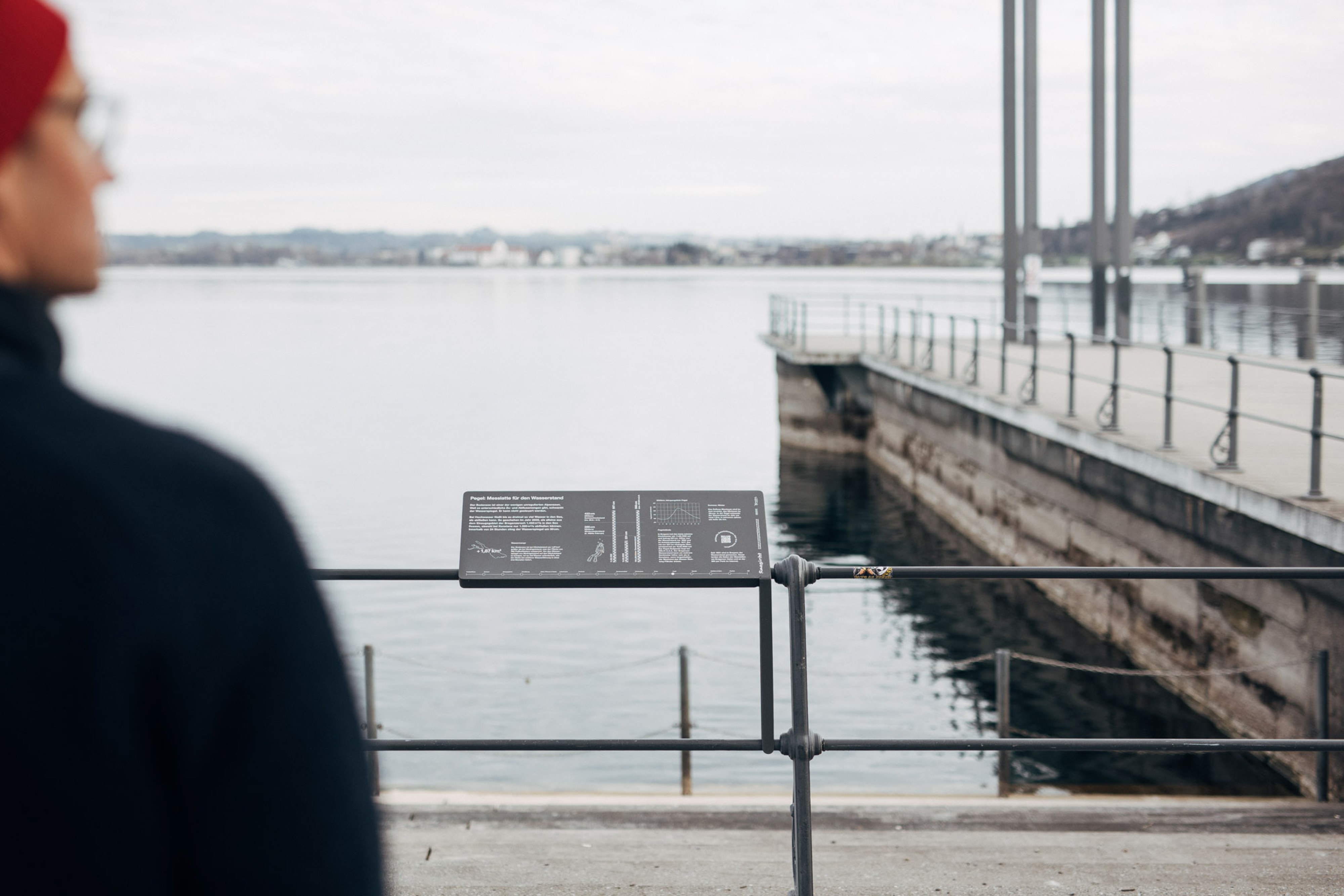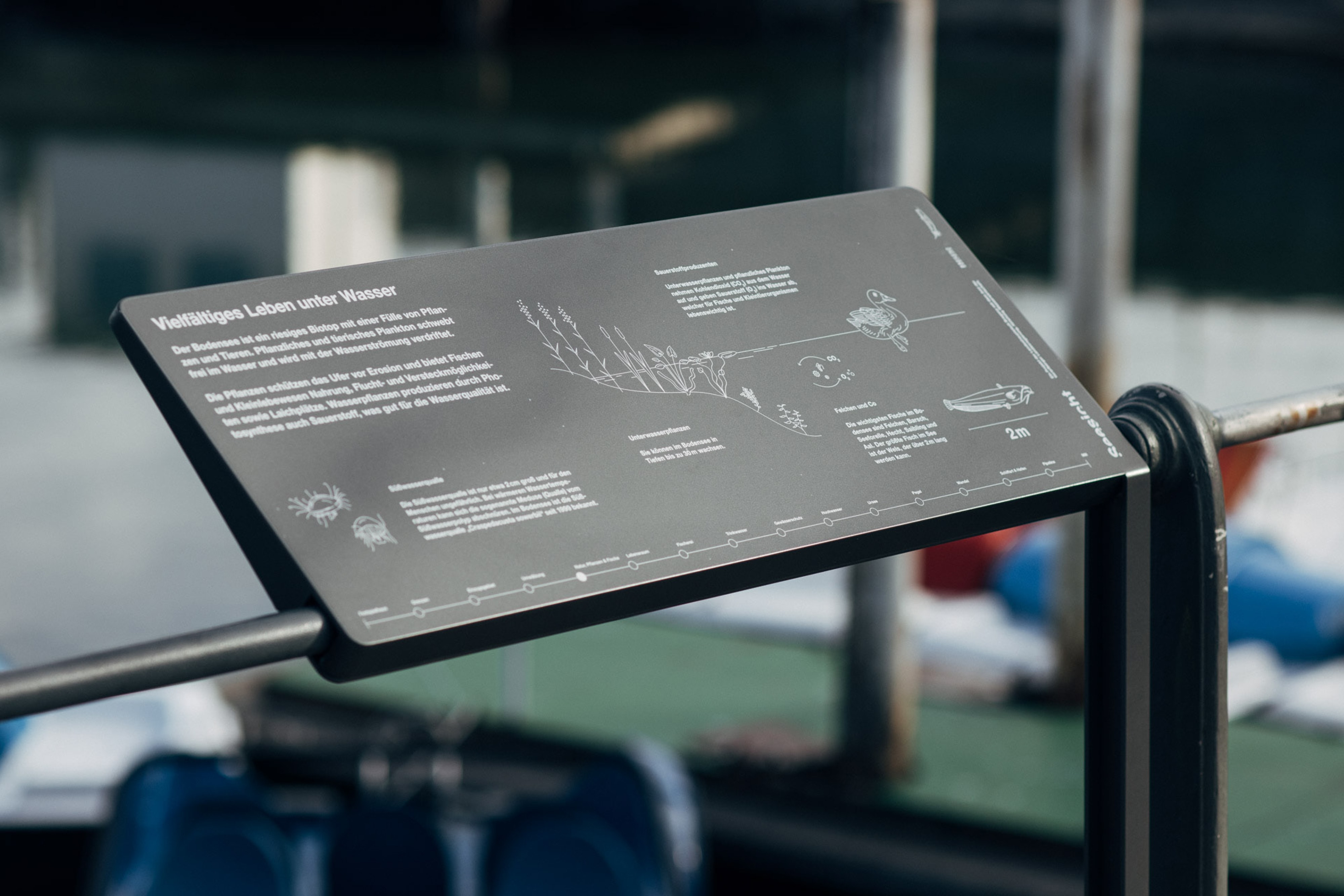Wasser- und Bodenseeinformationen entlang der Uferpromenade in Bregenz