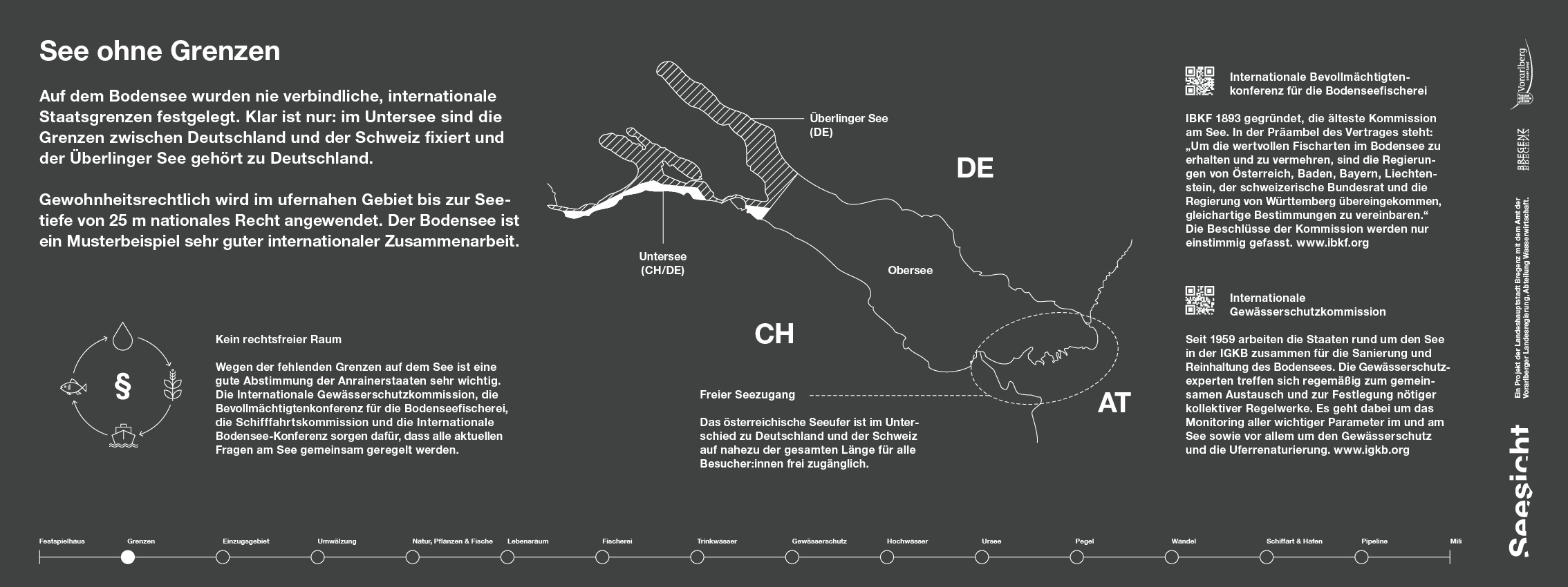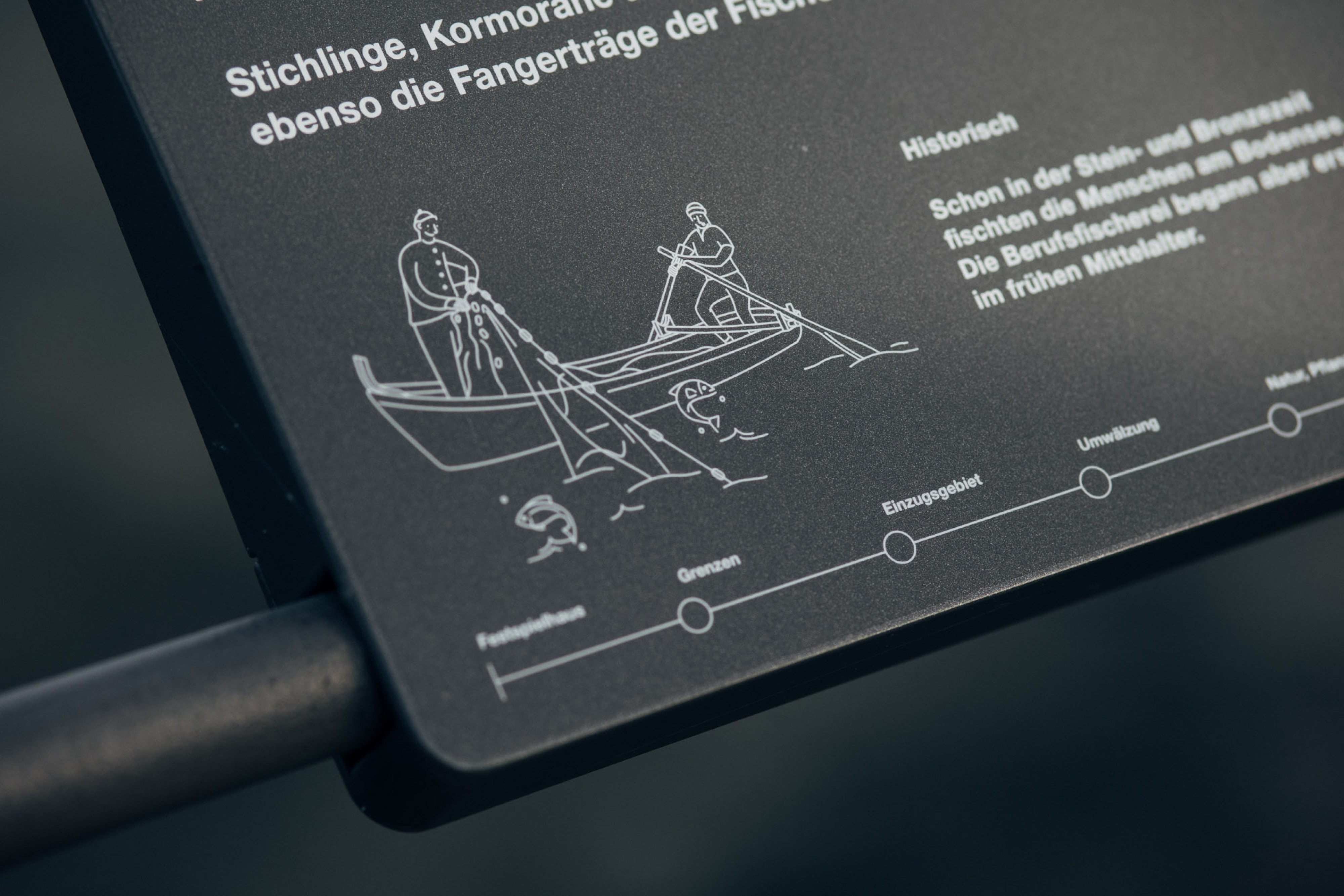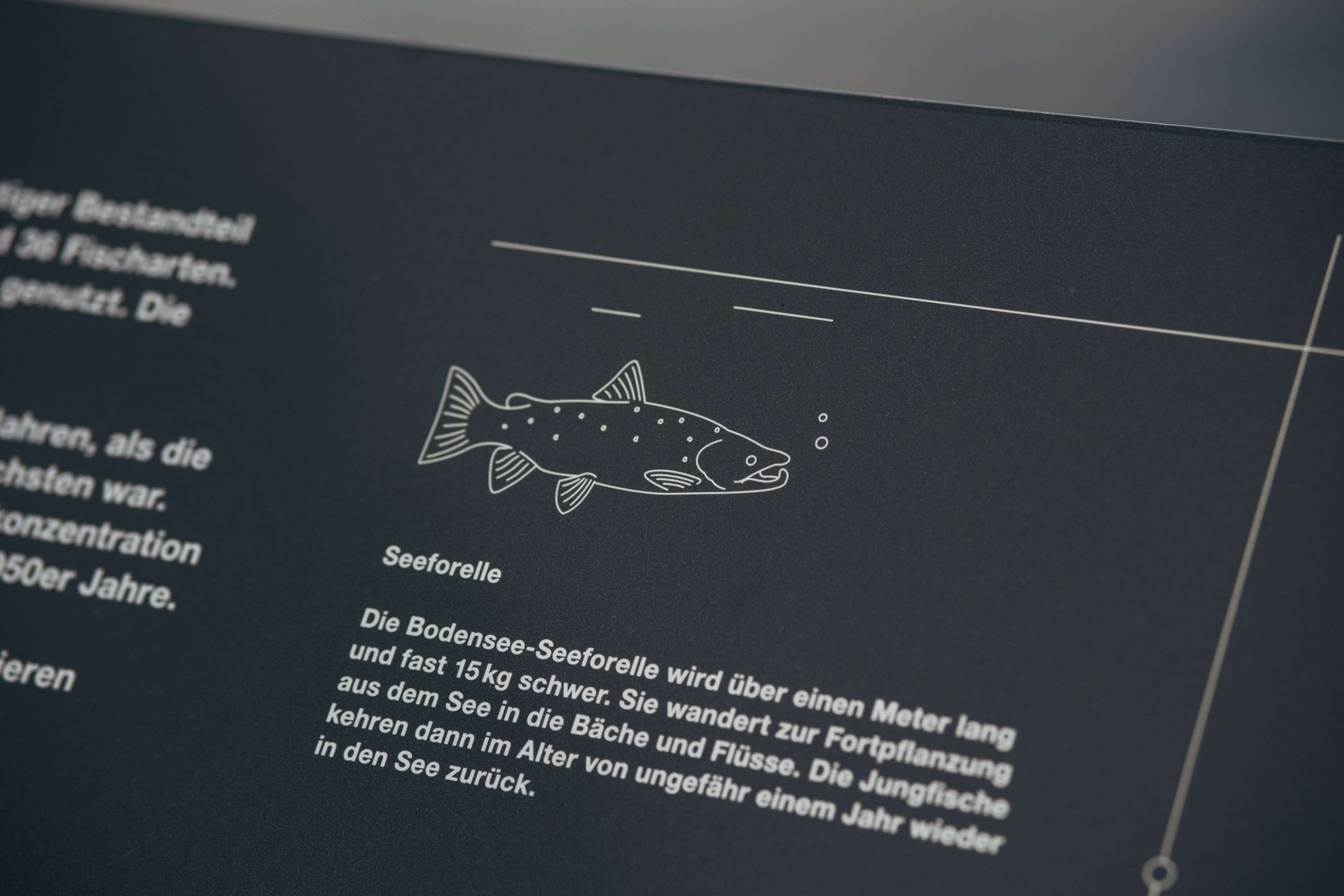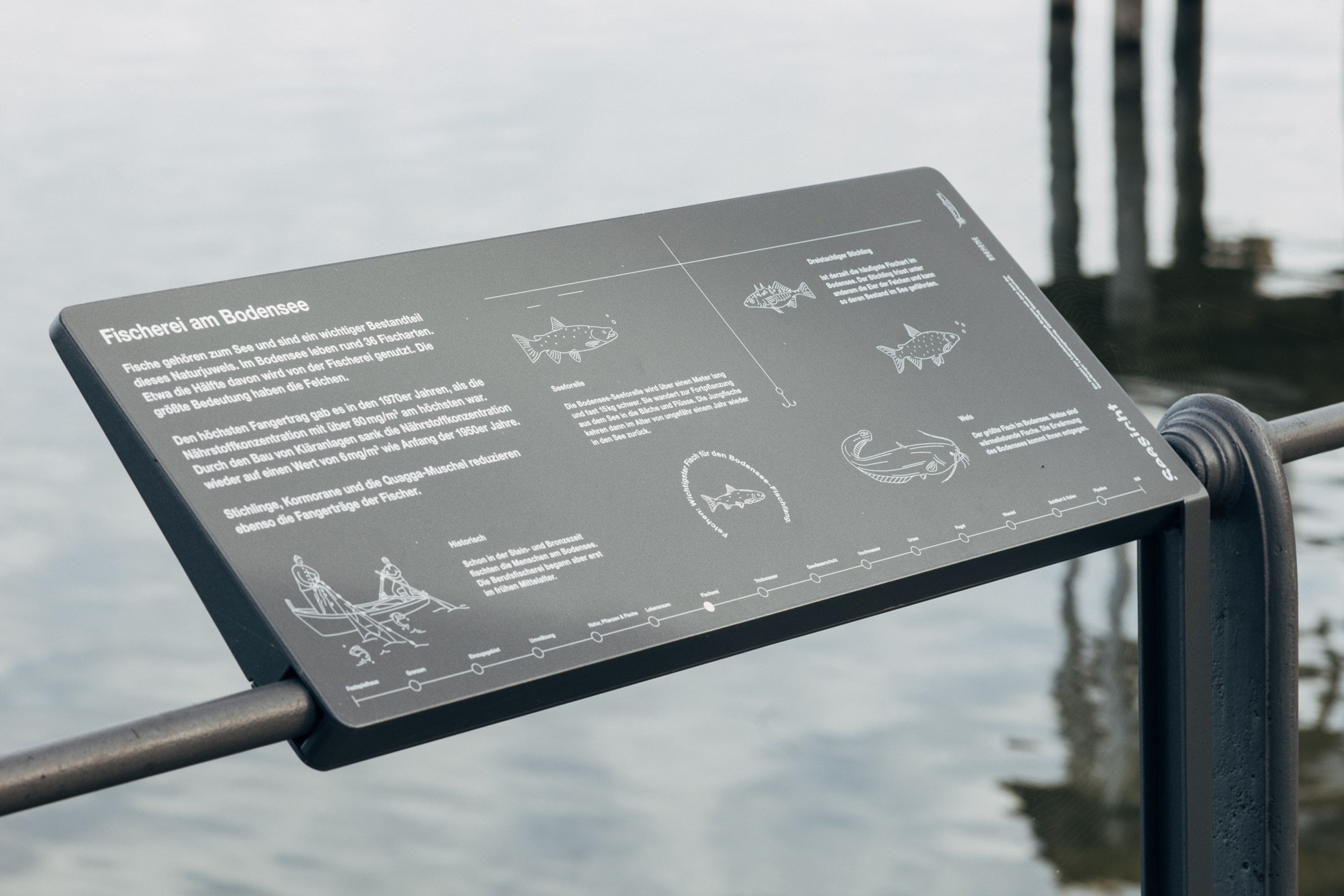 Für das Projekt „Seesicht“ hat Super BfG im Auftrag der Landeshauptstadt Bregenz 14 Schautafeln entwickelt. Diese Tafeln sollten sich optisch dezent in das Uferpanorama einfügen und die Informationen in unterschiedlicher Tiefe präsentieren.
