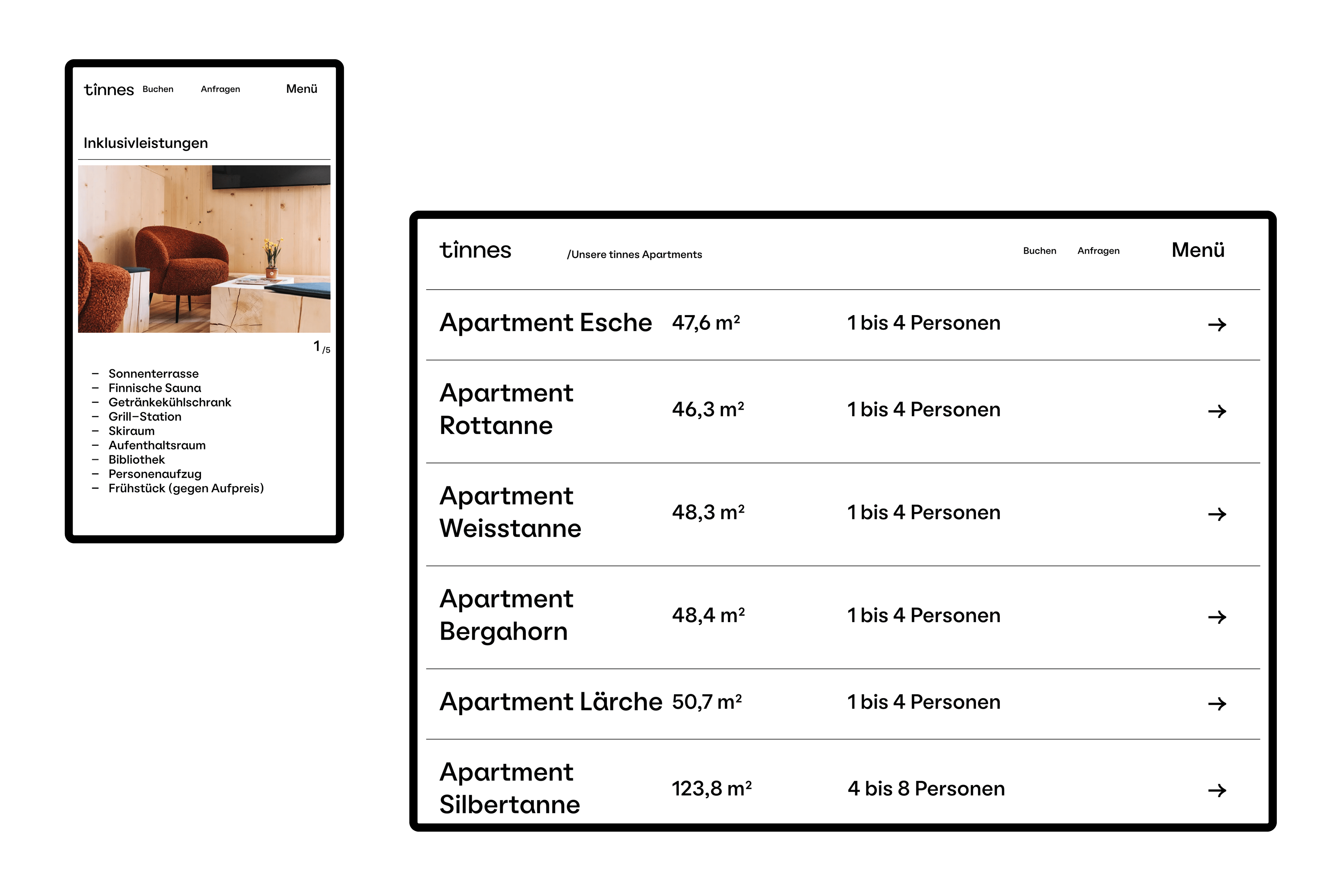 Branding & Webdesign für Tinnes Apartments: Typografie, Haltung & Architektur vereint in einem digitalen Auftritt.