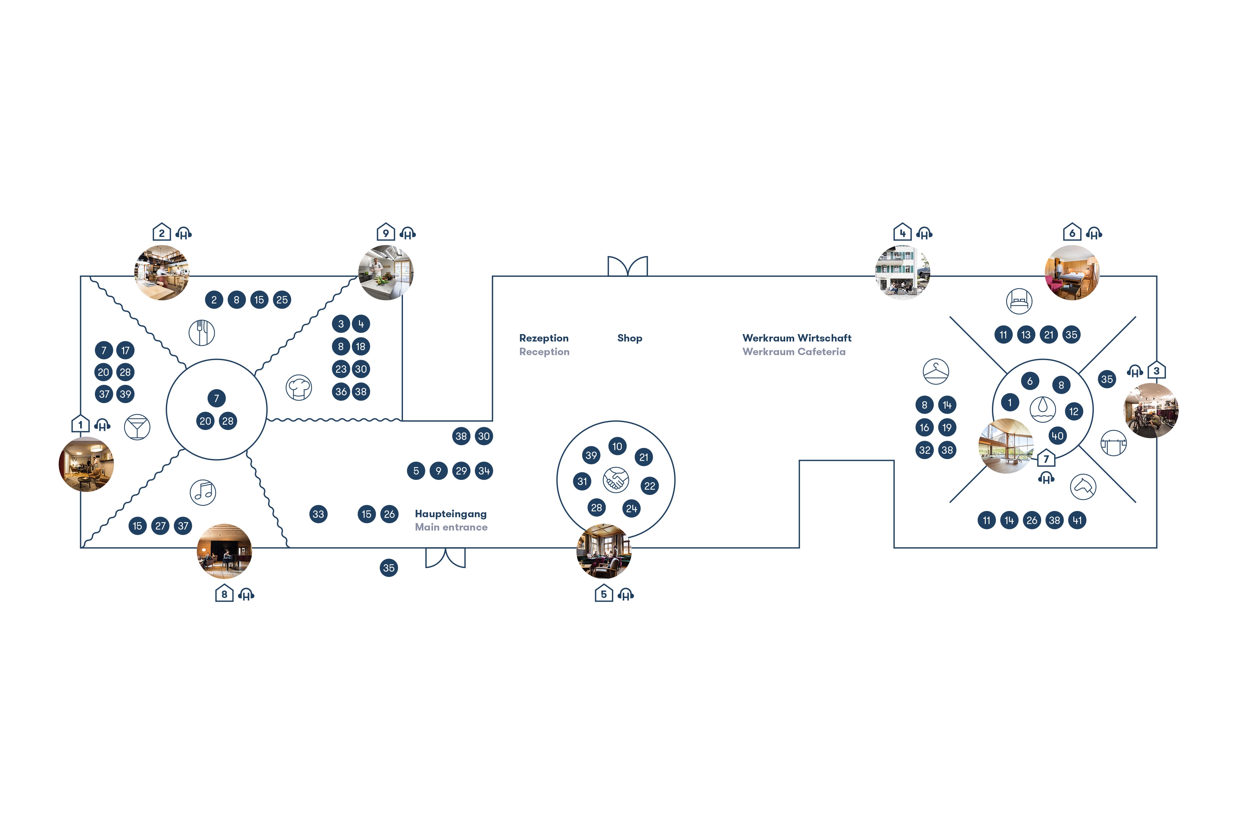 Prägnante Piktogramme sorgen für Orientierung in der Ausstellung »Gastgeben«. Gefertigt wurden sie in Zusammenarbeit mit Felder Metallhandwerk Andelsbuch.