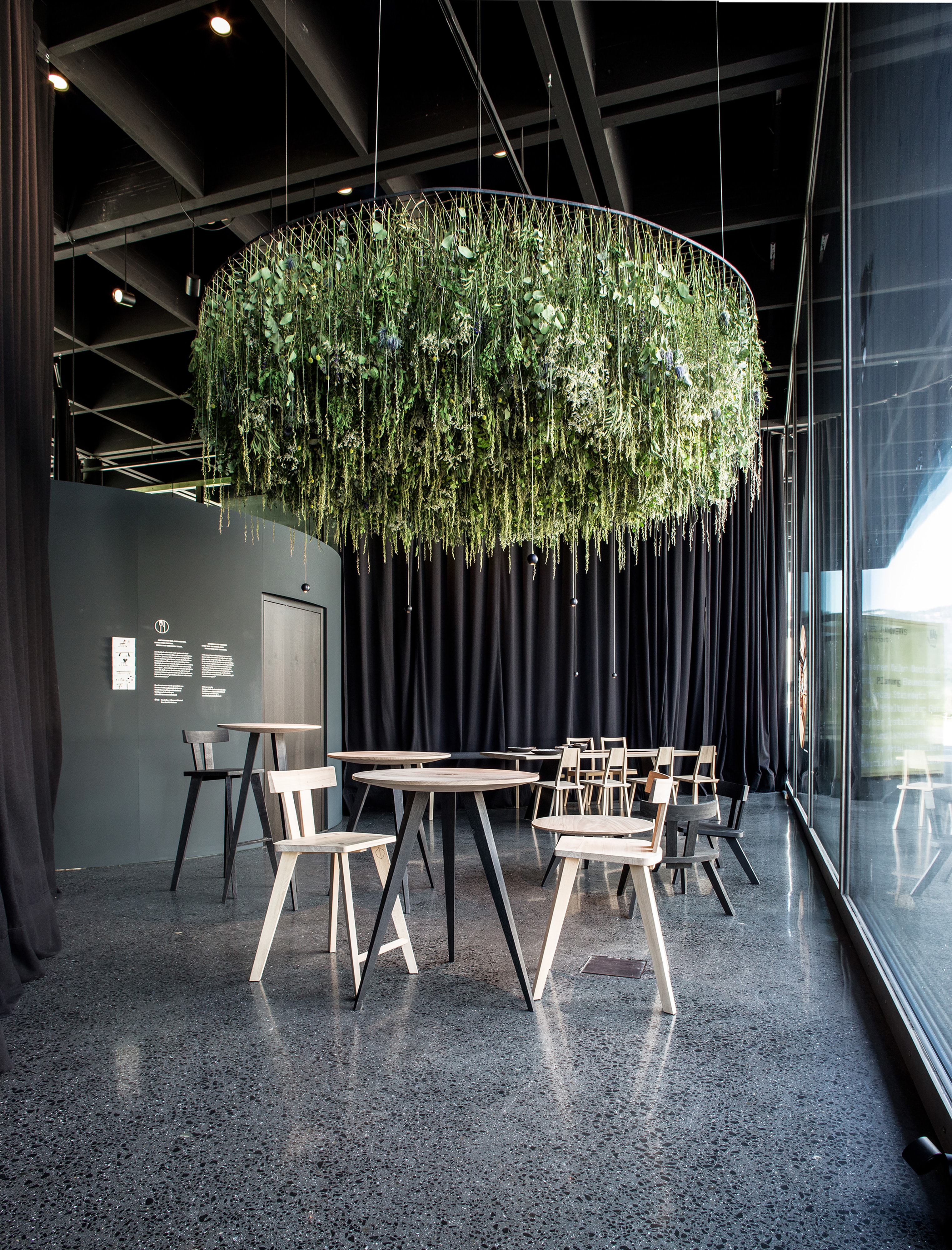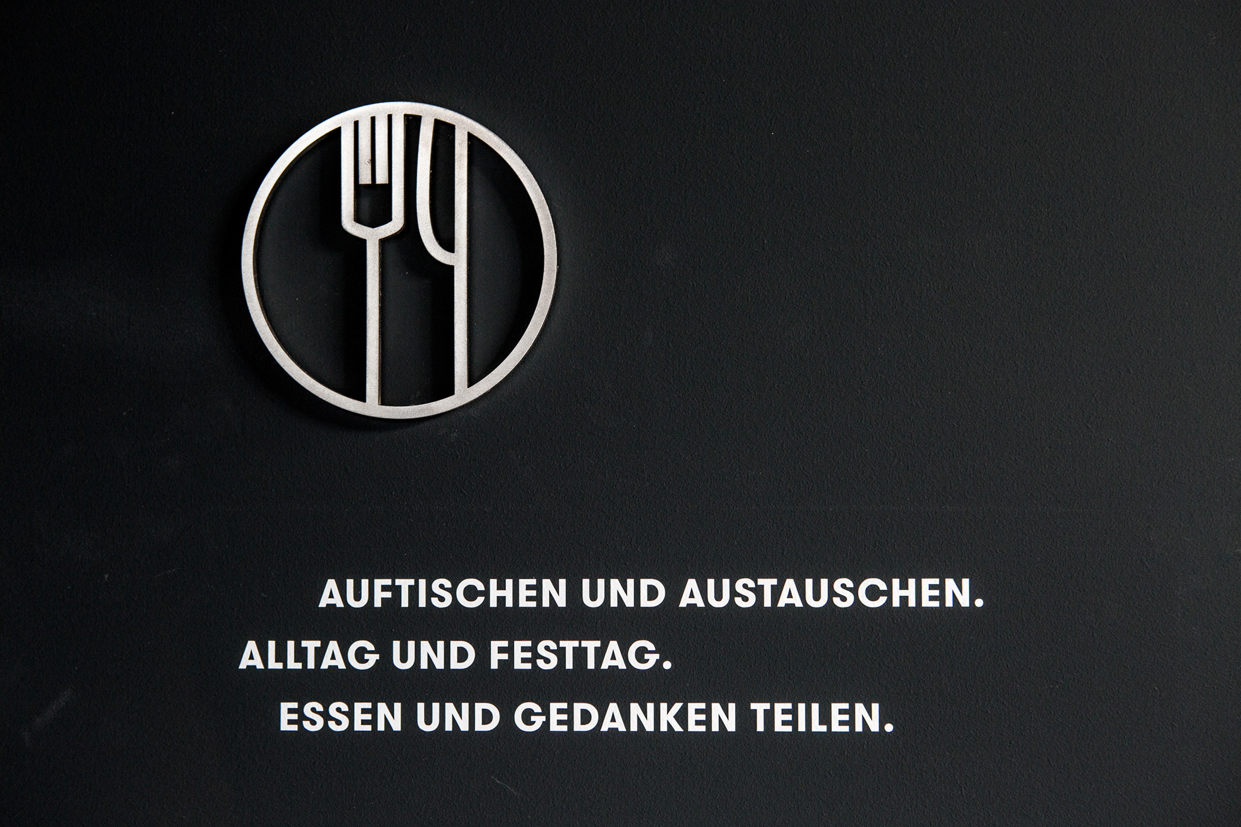 Das Handwerk im Mittelpunkt: In der Ausstellung »Gastgeben« präsentieren puristische Karten unterschiedlichste Gewerke in exklusiv angefertigten Halterungen.