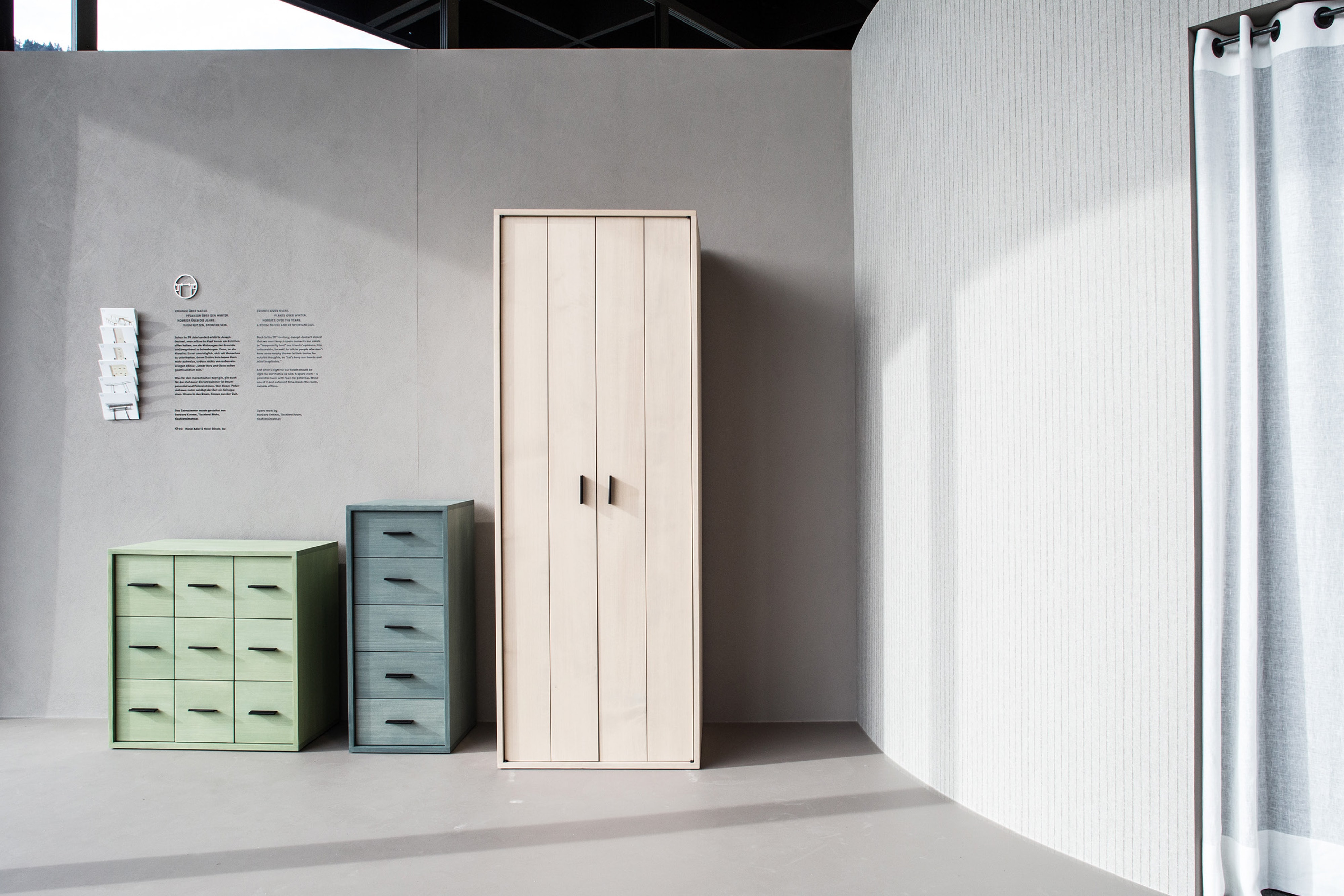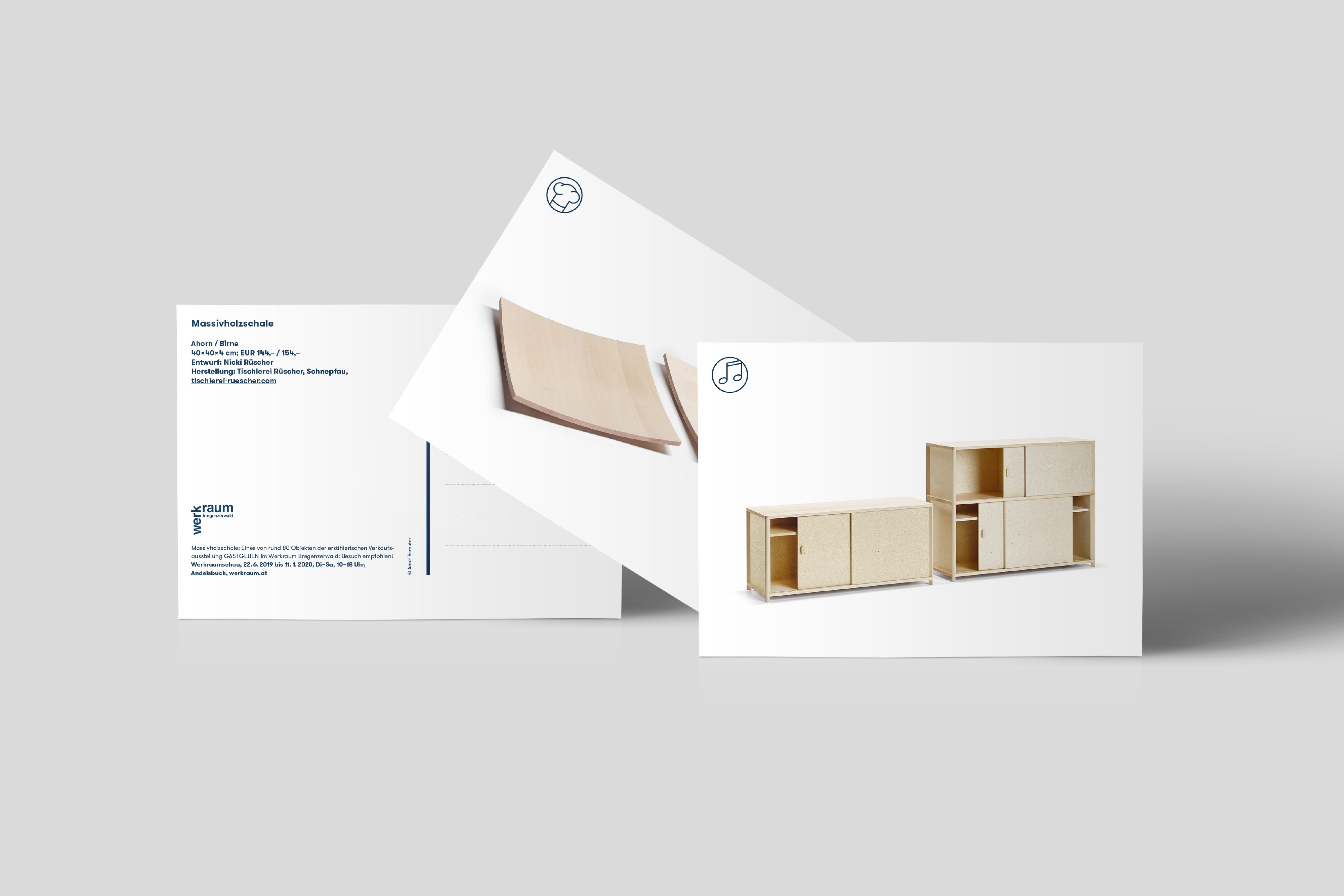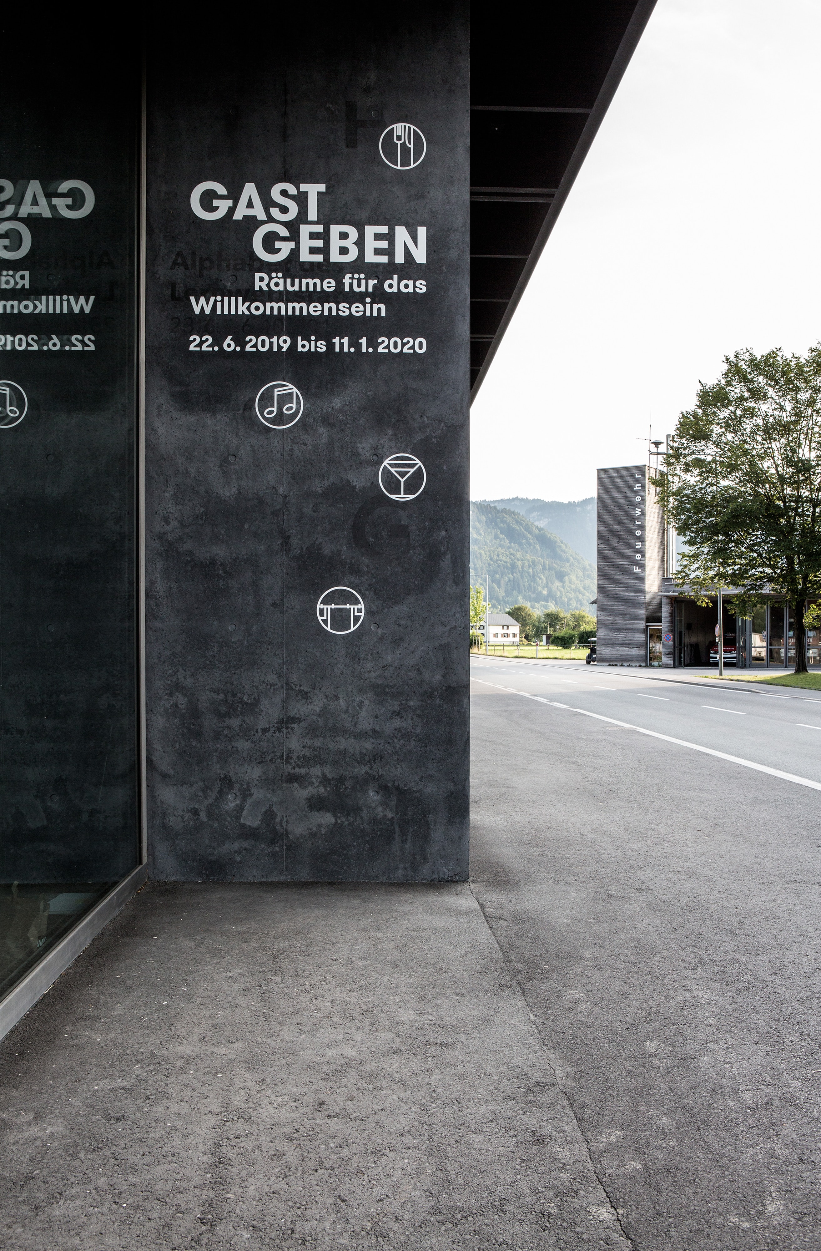Gastlichkeit trifft Handwerk: Für die Ausstellung »Gastgeben« im Werkraum Bregenzerwald realisierte Super BfG ein umfassendes Erscheinungsbild sowie die prägnante Signaletik.